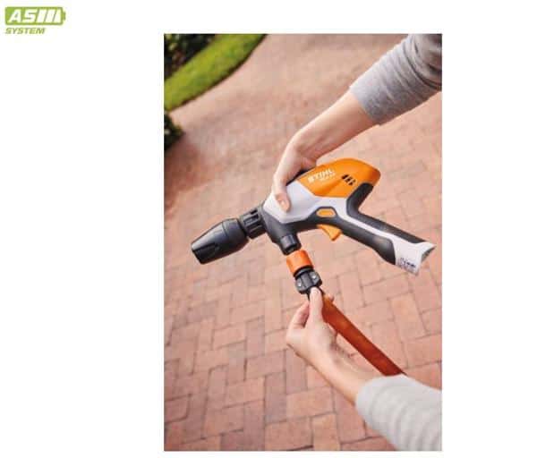 The compact, lightweight STIHL RCA 20 battery handheld pressure cleaner is ideal for smaller cleaning tasks around the home and for mobile use on the go. It works with lithium-ion batteries from the STIHL AS System. The STIHL RCA 20 can be used independently of mains power and water connections. If there is no water connection nearby, you can use water from e.g. a water bucket via the vacuum hose or use the supplied water transport container.