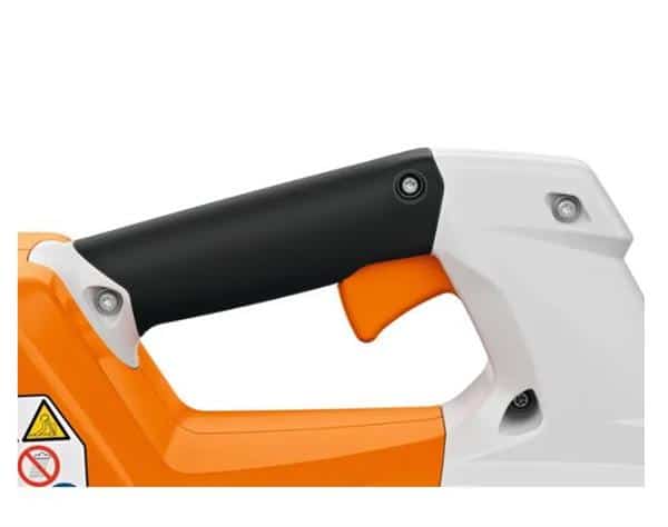 The blower is well balanced and lightweight. This facilitates fatigue-free working. The variably adjustable blowing force allows you to flexibly adapt the power to different cleaning situations. For example, if you want to blow away leaves on a gravel path, select the blowing speed so that only the leaves are blown away and not the gravel. This allows you to avoid rework and saves time. The STIHL BGA 50 does not require a locking lever and is therefore particularly easy to operate using the trigger.